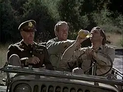 Later, in Post-Op, B.J. is apprehended by two military policemen. Hawkeye, who is standing nearby, explains that it's just another joke, but the MPs insist on arresting B.J. Potter takes a look at the arrest order—it's from Major General Frederick Fox, and it accuses B.J. of "willful misconduct". Potter allows the MPs to take Hunnicutt to Seoul, and an hour later he follows with Hawkeye, evidence in hand.