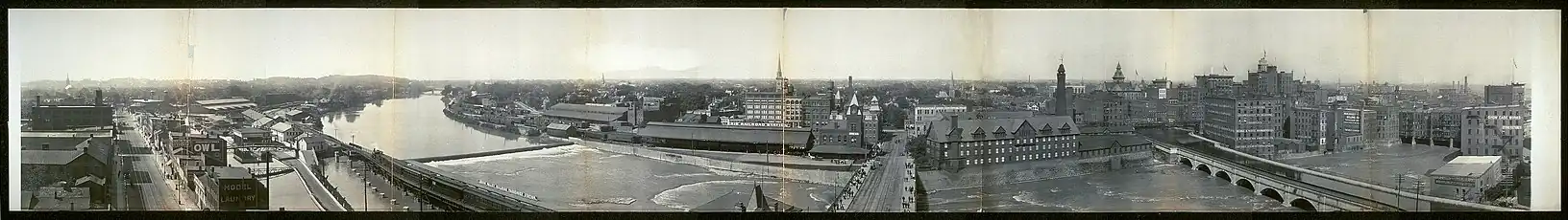 C. 1906 panorama of Rochester, the Lehigh Valley Railroad Station is in the foreground