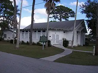 Sarasota architects Thomas Reed Martin and Clare C, Hosmer, formerly of Chicago, donated their design services for the building. Carpenters Pat Lampp, Fred Clark, and Leroy Bastedo were responsible for the clubhouse construction. The building originally consisted of a screened veranda and one large meeting room featuring a brick fireplace and a semi-circular stage, for which total construction cost was 3,120. A housewarming held on February 19, 1926, attracted 200 persons. Official incorporation, a year later, occurred under the direction of Charlotte Wellington, president.