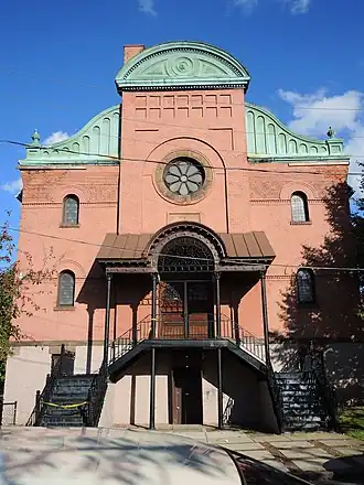 Leopold Street Shule is a historic synagogue located at Rochester in Monroe County, New York. It was built in 1886 and is a rectangular brick building set on a high cut stone foundation measuring 45 feet by 85 feet. It was built by Eastern European Jews affiliated with the orthodox Beth Israel Congregation. In 1973, the former synagogue was purchased by the Church of God and Saints of Christ, a Hebrew Israelite congregation.[2]
