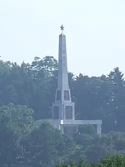The Liberation Monument is a monument in Pyongyang, North Korea. It was built in 1947 to honour Red Army soldiers who took part in capturing Korea from Imperial Japan during the final stage of the Second World War. Soviet paratroopers took control of Pyongyang on August 24, 1945. The monument is composed of a stele surmounted by a five-pointed red star, with the entire structure attaining a height of 30 meters. The square base of the monument bears an inscription on each of its sides. The text, in Russian and Korean, describes the purpose of the monument. The monument is often visited by official delegations as well as by tourists and city residents. It has become traditional for newlywed couples to visit the monument as well.