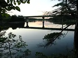 Until 1958, the Maine Central Railroad ran passenger trains from Portland, along the Rockland Branch from Brunswick to Rockland to the east, three trains a day on days besides Sunday and fewer trains on Sunday. Stations consisted of Wiscasset, Newcastle, Damariscotta Mills, Nobleboro, Winslow Mills and Waldoboro. In Portland's Union Station, these trains made connections to trains to Boston, New York City, Bangor and the Canadian Maritimes.[28] In the final months, service diminished to one daily except Sunday trip in each direction, until finally discontinuing on April 4, 1959.[29]