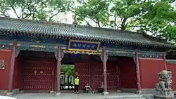 Other attractions are mostly located in Hongtong county. Most notable among these is Guangsheng Temple, built in 147 CE. Located in the upper Guangsheng temple is the Feihong Pagoda (飞虹塔), the largest and best preserved glazed Chinese pagoda.[27][28] Also in Hongtong county is the Susan Prison (苏三监狱), a restored Ming dynasty prison made famous by the Peking opera play Yu Tang Chun (玉堂春). It is Chinese oldest surviving prison.[29] Dahuaishu Ancestor Memorial Garden is a major shown for the mandatory population migration (aka Hongwu great migration, 洪武大移民) in early Ming Dynasty.