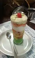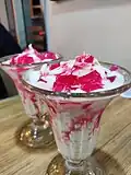 Faluda Sweet, cold dessert drink made with milk, vermicelli, basil seeds, and flavored syrups