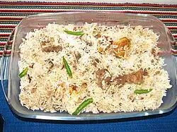 Morog Polao Bangladeshi variety of high quality rice like Kalijira, chinigura, Ichagura with chicken