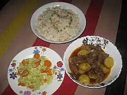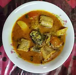 Bangladeshi cuisine refers to the food and culinary traditions prevalent in Bangladesh. Dating far in the past, the cuisine emphasizes fish, vegetables and lentils served with rice. Because of differences in history and Bangladeshi geography, the cuisine is rich in regional variations. While having unique traits, Bangladeshi cuisine is closely related to that of surrounding Bengali and North-East Indian, with rice and fish as traditional favorites. Bangladesh also developed the only multi-course tradition in South Asia. It is known as Bangaliketa styled cuisine. Bangladeshi food is served by course rather than all at once.[1]