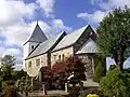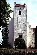 Schendelbeke (Geraardsbergen) Sint-Amanduskerk[37] first mentioned in 1139, transept and lower parts of the tower Gothic and of brick, alterations in 1669 and 19th century