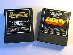 Two game cartridges by Coleco: BurgerTime (left) and Gorf