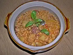 A stew of meat and vegetables, seasoned with paprika and other spices. | |