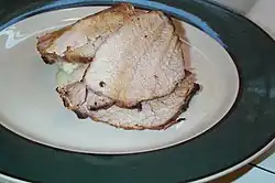 Literally means virgin roast and the pork tenderloins, which are usually prepared the same as above. May also be made into szűzérme (lit. virgin medallions; pork medallions) or szűztekercs (rouladen; thinly-cut tenderloins, stuffed with minced meat, vegetables and other things). | |