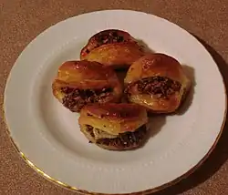 | Katmer | Phyllo pastry | Flaky pastry similar to baklava. Its filling consists of kaymak (sort of creamy dairy product), pistachio, sugar. | |