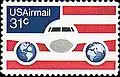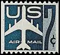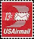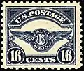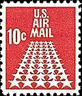 Domestic U.S. Air Mail was established as a new class of mail service by the United States Post Office Department (POD) on May 15, 1918, with the inauguration of the Washington–Philadelphia–New York route. Special postage stamps were issued for use with this service.[1] Domestic air mail became obsolete in 1975, and international air mail[2] in 1995, when the USPS began transporting First Class mail by air on a routine basis.[3][4] All post-1977 United States stamp images are copyright of USPS.[5]