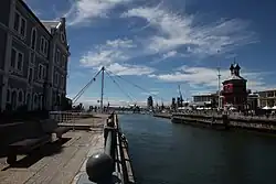 33°54′22.6″S 18°25′19.1″E / 33.906278°S 18.421972°E / -33.906278; 18.421972 (Victoria & Alfred Waterfront Swing Bridge (2019))
