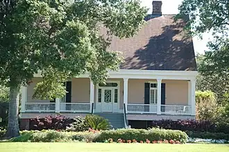 Examples of slave housing can be found on many of the extant plantation complexes. Historically housing for enslaved people on Louisiana plantations (prior to the reconstruction era), featured cabins consisting of two rooms, with one family in each room.[16] After the American Civil War in 1865, the United States of America had abolished slavery, and the architecture changed for laborers on plantations to include more space, one example of this is found at the Allendale Plantation in Port Allen.[16]
