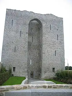 The remaining remnants of the castle include two of its original four towers, which are joined by a heavy curtain wall, and the unusual feature of an arch below the battlements. Archaeological excavations and records of the castle reveal that it was originally of similar form to Bunratty Castle, County Clare.