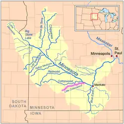 4. ^ a b "Watersheds of the Minnesota River Basin". Minnesota Pollution Control Agency. 2005-12-01. pp. Minnesota River Basin: Middle and Lower Minnesota River Watersheds. Archived from the original on 2007-02-05. Retrieved 2007-06-03.