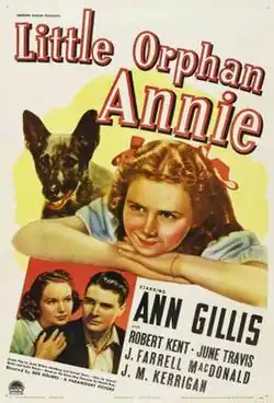 Little Orphan Annie is a 1938 American comedy film directed by Ben Holmes, and written by Budd Schulberg and Samuel Ornitz. It is based on the comic strip Little Orphan Annie by Harold Gray. The film stars Ann Gillis, Robert Kent, June Travis, J. Farrell MacDonald, and J.M. Kerrigan. The film was released on December 2, 1938, by Paramount Pictures.[1][2][3]