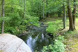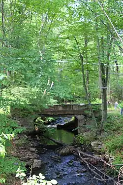 In the late 1800s, there was an old ferry road near the mouth of Little Wapwallopen Creek.[16] A railroad bridge also crosses the creek.[11] Historically, a road ran from a small settlement on Big Wapwallopen Creek to an even smaller one on Little Wapwallopen Creek, near where Church Road presently is.[18] The Glen Brook Water Company once had plans to construct a dam on the creek and also on its tributary Pond Creek.[19] The Wilkes-Barre Ice Company and the Hazleton Ice Company also dammed a stream in the creek's watershed in 1912 and 1916 respectively, forming the Ice Ponds.[14][18]
