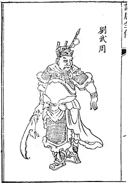 Liu Wuzhou (Chinese: 劉武周; died 28 August 622?[1]) was a rebel leader who rose against the rule of the Chinese Sui dynasty late in the dynasty's history, and he took imperial style—although it was not completely clear whether the title he took was khan or tianzi. He was initially only able to take control of modern northern Shanxi and parts of central Inner Mongolia, but after Li Yuan established the Tang dynasty at Chang'an as its Emperor Gaozu in 618, he, with support from Eastern Tujue, briefly captured Li Yuan's initial power base of Taiyuan in 619, posing a major threat to Li Yuan's rule. In 620, Li Yuan's son Li Shimin (the future Emperor Taizong) counterattacked, and not only recaptured Taiyuan but further captured Liu's power base Mayi (modern Shuozhou, Shanxi), forcing Liu to flee to Eastern Tujue. When Liu subsequently tried to flee back to Mayi, Eastern Tujue executed him.