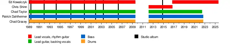 In February 2023, Rolling Stone released a detailed article on the discord within the band, mostly focusing on the issues between Chad Taylor and former business partner Bill Hynes.[31] Immediately after the article's publication, Hynes sued Taylor for defamation.[32] In August 2023, the Pennsylvania State Police charged Hynes with two felonies involving theft of nearly $4.4 million from the band's business and its primary investor, though Hynes and the investor's attorney claim that a settlement had been reached over such issues in August 2022.[33][34] Taylor and Hynes settled their lawsuit in March 2025, under undisclosed terms.[35]