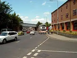 London Road is a shopping street in Sheffield, England. It leads south from the city centre near Moorfoot, parallel to Bramall Lane, through Sharrow, Highfield, Lowfield and Heeley, before becoming Chesterfield Road in Meersbrook next to The Crown Inn. Near Heeley Bridge was Heeley railway station, opposite the Bridge Inn. The road ended at Toll Bar bridge on the Meers Brook, the former boundary between Yorkshire and Derbyshire.