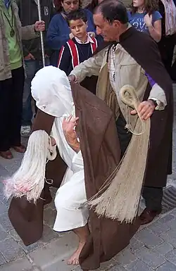 Los Picaos are public acts of penance of the Christian religion that occur in the town of San Vicente de la Sonsierra in La Rioja (Spain).[1] In Christian processions and Stations of the Cross, members of the Cofradía de la Santa Vera Cruz de San Vicente, a Christian confraternity of penitents, practice self-flagellation of the back by using a discipline as a voluntary act of faith; they are called disciplinantes.