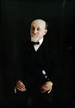 Louis Ducos du Hauron, photographed on an Autochrome plate in 1910. The Lumière Brothers' Autochrome process was based on one of the several color photography methods he patented in 1868.