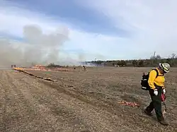 Firefighters carrying out the prescribed burn in Block M of the Louis René Barrera Indiangrass Wildlife Sanctuary