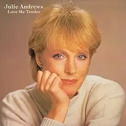 Love Me Tender is a studio album released in 1982 by English singer Julie Andrews. It was produced in Nashville by Larry Butler,[2] earlier that year when she briefly stepped away from filming The Man Who Loved Women in Los Angeles.[3] The album was first released in England by Peach River Records and distributed by PRT, and includes fourteen songs, the American release by Bainbridge Records offered only ten of the cuts, while the Japanese issue features sixteen songs.[4]