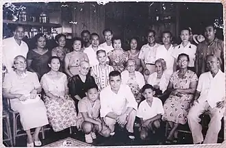 Ludovico Arroyo Bañas with the family of his wife Carmen Jalandoni Jover during a clan gathering sometime in 1950s. Ludovico is behind his wife Carmen (standing, fourth from the left), while Iloilo City Mayor Dominador Jalandoni Jover (also standing) could be found fourth from the right.
