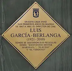 Commemorative plaque to Luis García-Berlanga in Madrid.