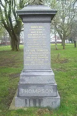 Thompson was accidentally killed on 15 January 1941 in Sunderland, aged 73, according to Sir Cuthbert Headlam, Bart. after "trying to work a winch and [getting] caught up in the machinery."[4] He was buried in Bishopwearmouth Cemetery with his wife's parents and siblings.