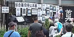 On 22 November, members of Luo's family went to the site to mourn him.[14][45] They initially wanted to remain anonymous, citing concern for their personal safety,[14][45] but eventually went public, guided by the Hong Kong Federation of Trade Unions (HKFTU).[45] Luo's funeral was held on the same day.[5] His relatives said that he would be buried on a family plot in mainland China.[14] The HKFTU said that, at the family's request, Luo would be buried next to his father in Hunan.[44]