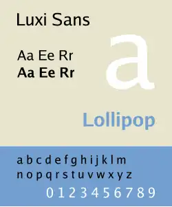 Luxi is a family of typefaces originally designed for the X Window System by Kris Holmes and Charles Bigelow from Bigelow & Holmes Inc. The Luxi typefaces are similar to Lucida – their previous font design.