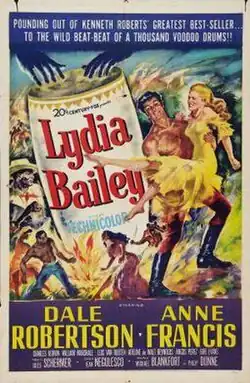 Lydia Bailey is a 1952 American historical adventure film directed by Jean Negulesco and starring Dale Robertson, Anne Francis and Charles Korvin. It was made by 20th Century Fox and based on the 1947 novel of the same name by Kenneth Roberts.[2]