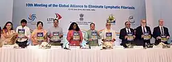 Various people in Delhi present a 2018 plan for eliminating LF with government support of J.P. Nadda