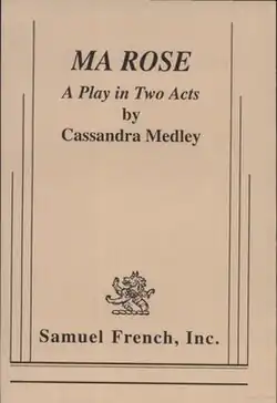 Ma Rose is a play by Cassandra Medley. Originally produced as a one-act at the Ensemble Studio Theatre in June, 1986, the full-length play premiered Off-Broadway at Women's Project Theater in October, 1988. The following year, the play made its regional premiere at Eureka Theatre Company in San Francisco. Ma Rose was a 1989 finalist for the Susan Smith Blackburn Prize.[1]