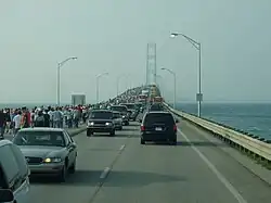 57. ^ "Bridge to be closed to public traffic during Annual Bridge Walk" (Press release). Mackinac Bridge Authority. May 16, 2017. Retrieved March 28, 2024.