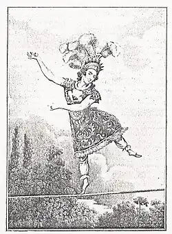 Saqui was said to have never fallen off the rope during a performance.[3][8][6][26] She had been something of a celebrity for several decades.[27] Her son Felix Lalanne also performed as a ropewalker and toured his act to Australia in the 1850s.[28]