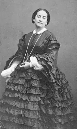 Another creation was Olga in Daniel Auber's La circassienne, premiered on 2 February 1861 by the Opéra-Comique at the second Salle Favart.[7] The Musical World (16 February) found her "perfectly dazzling with grace and beauty in her three rich costumes, ... especially in the first act, in which her entrance enchanted the whole house."[4] Vocally, her portrayal in the quartet in the first act was "charming and natural" and in the challenging ballad à vocalises, grand air, and love duet of the third act, "graceful and already brilliant" without however being at the level of a Laure Cinti-Damoreau or Caroline Miolan-Carvalho.[4]