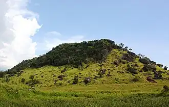 Degradation of Precambrian rock has effected in the creation of a mature mantled and undulating peneplain, disturbed by many prominent remnants of erosion (rock outcrops) and ridges. Imposing topographic feature is the 8 kilometres (5.0 mi) long range of rocky mountains of the south-west of the park. The geographical regime includes alluvium deposits and Miocene limestone. The major soil type is the relatively fertile but easily eroded red earth. Water systems of the park made up 15% of the land area, include five reservoirs; Maduru Oya, Ulhitiya, Ratkinda, NDK, and Henanigala reservoirs and tributaries of the Mahaweli and Maduru Oya rivers.[2] Situated in the dry zone of Sri Lanka, the climatic conditions are dominated by the north-east monsoon, which persists from October to February. The mean annual rainfall is 1,650 millimetres (65 in) and the mean annual temperature is about 27 °C (81 °F), and overall evapotranspiration rates usually exceed precipitation levels.[3]
