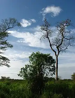 The park lies entirely in the dry zone although the park's southern boundary is near the intermediate zone.[2] The climax community of the area is tropical dry mixed evergreen forests characterized by Drypetes sepiaria, Chloroxylon swietenia, Manilkara hexandra, Pterospermum canescens, wood apple Feronia limonia, Cassia fistula, and Dimorphocalyx glabellus. However a majority of the forests within the park had been severely exploited for shifting cultivation. This has effected in secondary forests and vast stretches of open plains dominated by grasses. The herbaceous stage is succeeded by shrubs and the thicket stage is characterized by Trema orientalis. Among the first trees to appear is Pterospermum canescens, Drypetes sepiaria, and Manilkara hexandra.