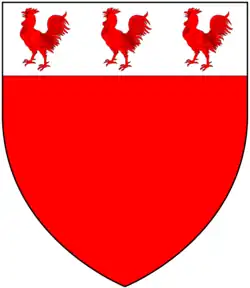 Canting arms of Hancock of Combe Martin: Gules, on a chief argent three cocks of the field.[12] These arms are visible on the monument to Judith Hancock (d.1676), wife of Henry Stevens of Vielstone, in the parish of Buckland Brewer, on her mural monument in Great Torrington Church. Monuments to the Hancock family also exist in Combe Martin parish church
