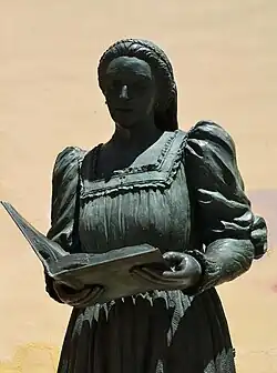 María Enríquez de Luna (1474 – 1539) was the wife of Juan (Giovanni) Borgia, second Duke of Gandía. Her father was, Enrique Enríquez de Quiñones, making her paternal grandfather Fadrique Enríquez. Her aunt, Juana Enríquez, was Queen of Aragon by marriage to John II of Aragon. Therefore, she was a first cousin of King Ferdinand II of Aragon. She married Juan somewhere between 1493 and 1494, and together, they had two children: Juan de Borja y Enríquez (known as Juan Borgia), who became the 3rd Duke of Gandía, and Isabel de Borja y Enríquez, who was born shortly after her father was killed and never knew him. The younger Juan was the father of Saint Francis Borgia. Isabel grew up to be abbess of Santa Clara in Gandía. In personality, María was very intelligent, devout, financially shrewd, and devoted to her husband and children, in contrast to her husband, who was regarded by many as a womanizer, a gambler, a drunkard, and an incompetent general.