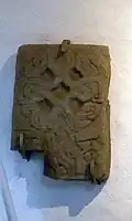 10th- or 11th-century carved stone slab, showing a cross in the style of a cart-wheel.