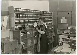 Shortly after the outbreak of the First World War in 1914, the ICRC, under its president Gustave Ador, established the International Prisoners-of-War Agency (IPWA) to trace POWs and to re-establish communications with their respective families. Many of the staff were women.[7] This group included female pioneers such as Marguerite Cramer, Lucie Odier, Suzanne Ferrière, and also van Berchem: