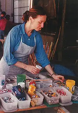 Angliviel de la Beaumelle worked as a contemporary glass designer in Venice, founding the company Laguna~B in 1994.[4][3][5] She also served as the president of the French Alliance of Venice, which promoted French culture in Italy.[5] She was also a patron of the Murano Glass Museum and the Fondazione Musei Civici di Venezia.[6] She has discussed the process she uses to make glass art in the media, including in Architectural Digest.[7]