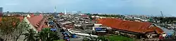 The remaining city wall in front of the Maritime Museum onwards to the bastion Zeeburg and a bit further west is all that is left of the wall that once surrounded Batavia during the 17th and 18th centuries. Only Zeeburg and Culemborg remain out of the twenty-three bastions from that period.[6] The Menara Syahbandar (also known as de Uitkijk), situated about 50 meters from the Maritime Museum, is the former watch tower that was built on the remains of the old bastion Culemborg. The watch tower acted as a signal box and observation post since 1839 over the roads of Batavia. Before 1839, the signals with the ships were exchanged from the flagpole at the old VOC-shipyard situated straight behind the watchtower. The tower lost part of its function after 1886 when the new harbor of Tanjung Priok was opened.[7]