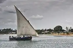 While the use of ocean marine resources dates back to as early as 60 kya in South African sites such as Blombos Cave, and later along the east coast, the record for the use of nautical technologies is less known. Based on dating of LSA sites in Zanzibar Cave on the island of Zanzibar, the use of nautical technology would date at least to the 7th or 8th century AD for the Tanzanian coastal cultures that moved from the mainland to inhabit the island. That date can be pushed back even further by sites discovered in the Mafia Archipelago, sites which suggest colonization during the Early Iron Age, which has been dated to between the 1st and 6th century AD.[1] The exact time of settlement is up for debate though, as studies performed in Kuumbi Cave show. Kuumbi Cave is located near the southeast coast of Zanzibar, based on artifacts dated from the site there is an argument presented that the residents of Zanzibar crossed over a land bridge that existed in the late Pliocene, before the sea level rose around 8000 BC.[2] Archaeologists believe that as coastal areas were easier to reach than inland areas along Eastern Africa, most interactions between cultural groups were longitudinal in nature. This trade started long before the implementation of boats, but was made easier after the fact.