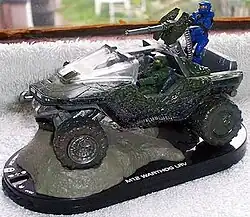 While previous Halo action figure series were produced by Joyride Studios, Todd McFarlane produced several sets of Halo 3-related action figures. In addition to articulated figures released throughout 2008,[32] McFarlane also released 12" inarticulate and more detailed figurines in November.[33] Other companies which produced Halo 3 figures and statues include Kotobukiya, a Japanese company specializing in high-end statues and replicas, and Weta Collectibles, a division spawned from the famed physical effects company Weta Workshop.[34] Weta Collectibles auctioned four of the statues in their lineup, specially cast in solid sterling silver, for auction on eBay during August.[35]